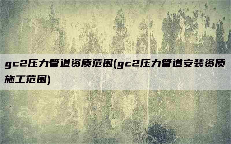 GC2就是在壓力管道安裝工作方面所涉及到的一種安裝資質,然而在擁有GC2壓力管道的相關資質的同時,可以升值的安裝范圍包括了輸送箱體介質的管道,而其輸送距離應確切到5千米以上。