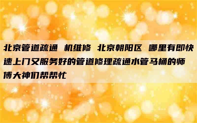 北京朝陽區 哪里有即快速上門又服務好的管道修理疏通水管馬桶的師傅大神們幫幫忙